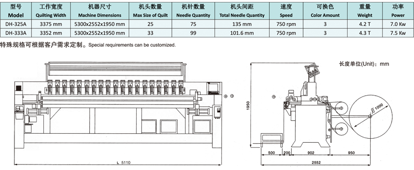 可任意選擇機(jī)頭絎繡。