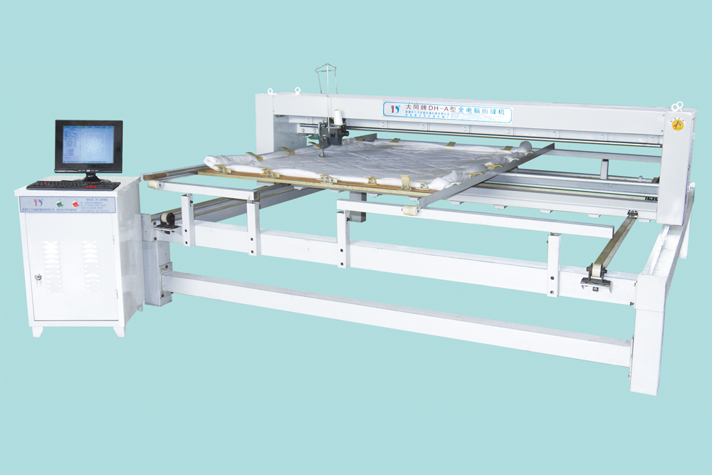 DH-A系列電腦高速絎縫機是制作各種床被、墊罩的縫制設(shè)備,縫制效率快、花樣美觀、圖形精細。該產(chǎn)品結(jié)構(gòu)采用橫梁運動方式,縫制時被巷物不運動,具有較小的占地面積,可節(jié)省40%的使用空間。