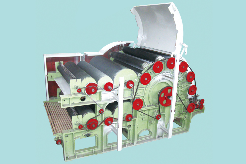 適應(yīng)1.5~20Dx38~65mm人造纖維梳理。單錫林高速梳理,雙道夫出棉,產(chǎn)量高;采用剝毛羅拉剝棉;喂棉羅拉變頻傳動(dòng)。